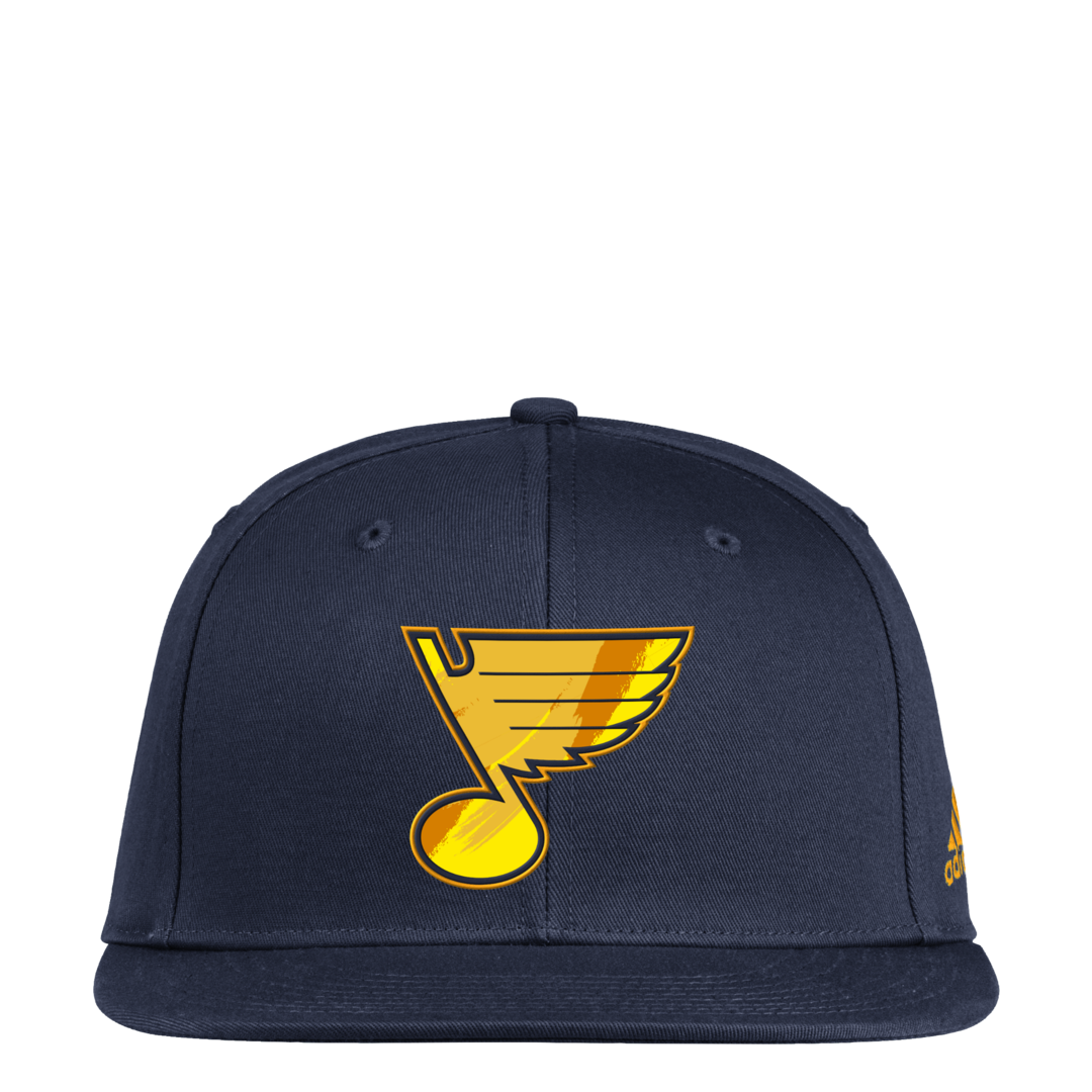 Top off your look with the Adidas St Louis Blues Navy Blue Yellow Camo Flat Brim Mens Snapback Hat, a premium snapback hat built for comfort, clean style, and everyday team pride.