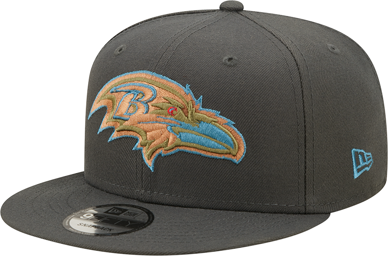 Top off your look with the Men's Baltimore Ravens New Era Graphite Color Pack Multi 9FIFTY Snapback Hat, a premium snapback hat built for comfort, clean style, and everyday team pride.