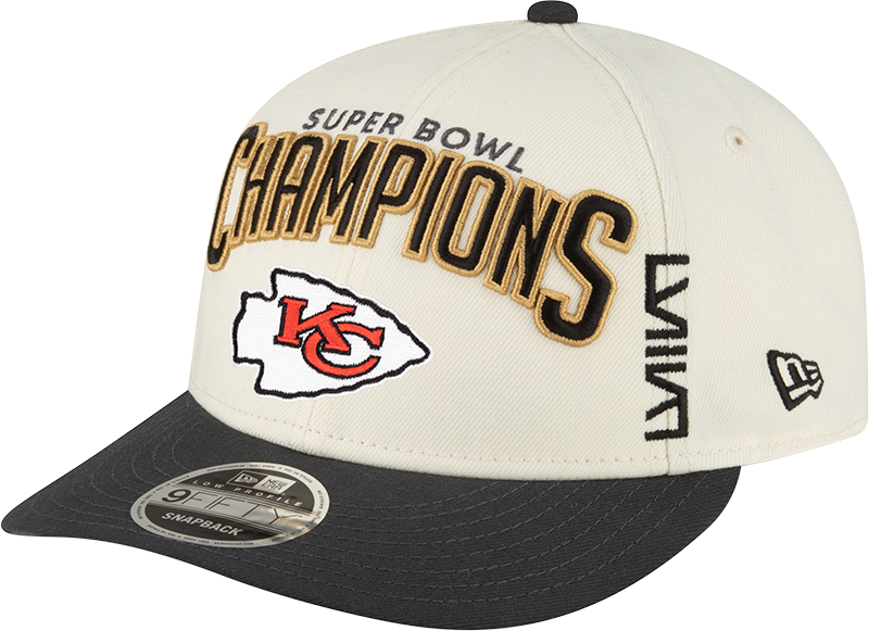 Top off your look with the Men's Kansas City Chiefs New Era Cream/Black Super Bowl LVIII Champions Locker Room Low Profile 9FIFTY Adjustable Hat, a premium snapback hat built for comfort, clean style, and everyday team pride.
