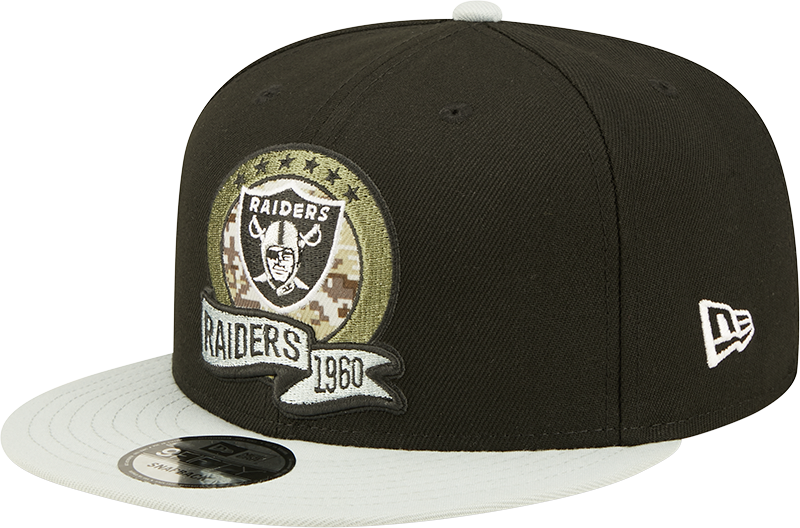 Top off your look with the Men's Las Vegas Raiders New Era Black/Gray 2022 Salute To Service 9FIFTY Snapback Hat, a premium snapback hat built for comfort, clean style, and everyday team pride.