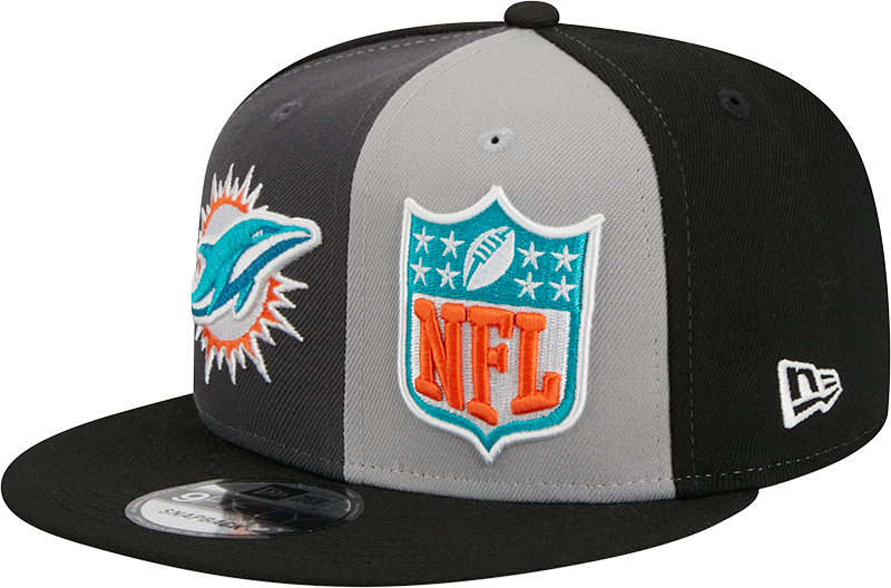 Top off your look with the Men's Miami Dolphins New Era Black/Gray 2023 Sideline 9FIFTY Snapback Hat, a premium snapback hat built for comfort, clean style, and everyday team pride.