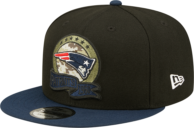 Top off your look with the Men's New England Patriots New Era Black/Navy 2022 Salute To Service 9FIFTY Snapback Hat, a premium snapback hat built for comfort, clean style, and everyday team pride.