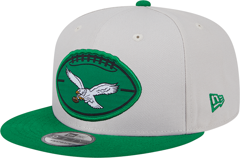 Top off your look with the Men's Philadelphia Eagles New Era Stone/Kelly Green 2024 Sideline Historic 9FIFTY Snapback Hat, a premium snapback hat built for comfort, clean style, and everyday team pride.