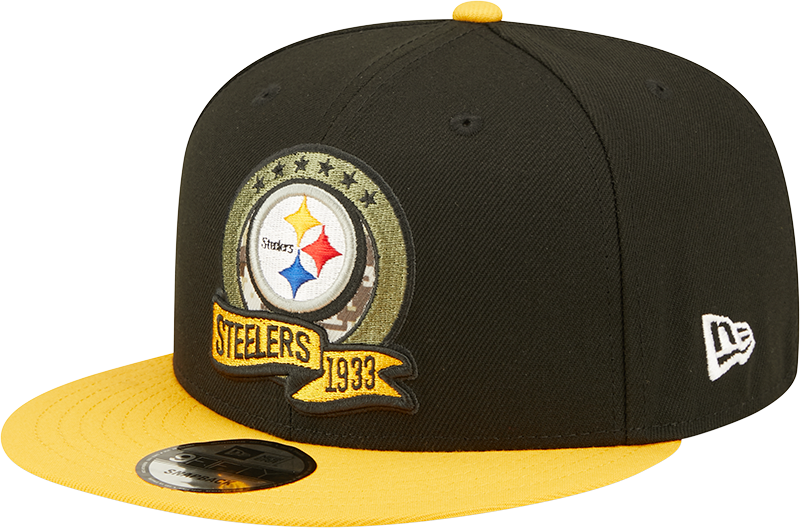 The Men's Pittsburgh Steelers New Era Black/Yellow 2022 Salute To Service 9FIFTY Snapback Hat is made for men who want versatile style, a comfortable feel, and a look that works from game day to everyday wear.