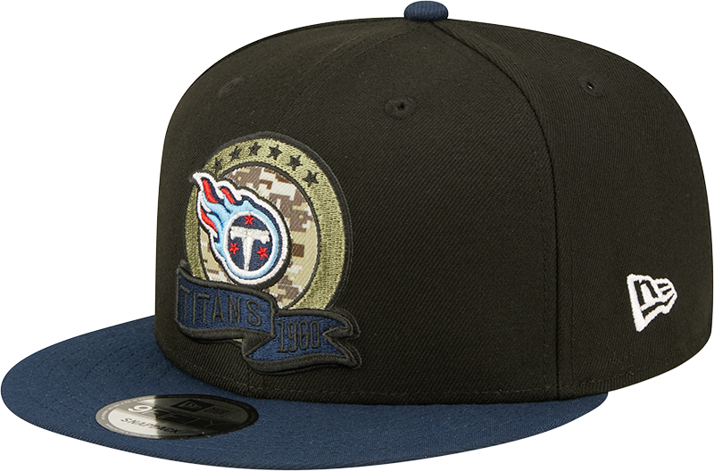 Top off your look with the Men's Tennessee Titans New Era Black/Navy 2022 Salute To Service 9FIFTY Snapback Hat, a premium snapback hat built for comfort, clean style, and everyday team pride.