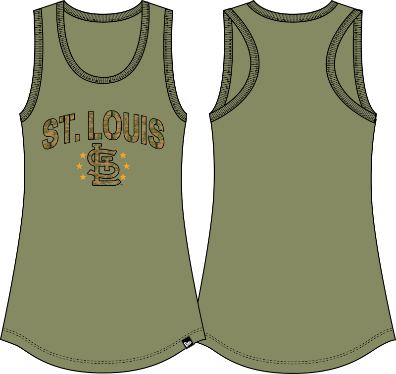 The Women's St. Louis Cardinals New Era Army Green Armed Forces 2024 Active Tank Top is made for women who want versatile style, a comfortable feel, and a look that works from ballpark to everyday wear.